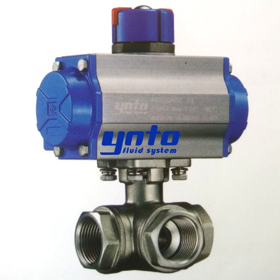 遠通氣動三通螺紋球閥閥體和端蓋脫蠟精密鑄造,閥桿防爆出設計,可選多種螺紋標準,全流量通經浮動球設計。遠通LT三通閥門適用于各類自動化系統中的三路管路流向切換、分流及合流,氣動閥門的球體分L型和T型,氣動執行器帶動球體經90°的旋轉動作達到換向的控制目的,或經180°旋轉動作達到換向與分流河流的控制目的。